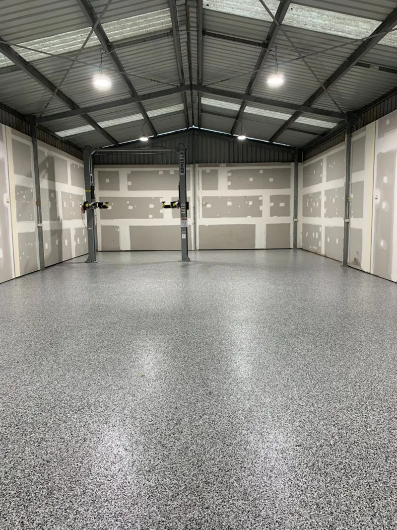 Get a modern, slip-resistant upgrade with flake epoxy flooring